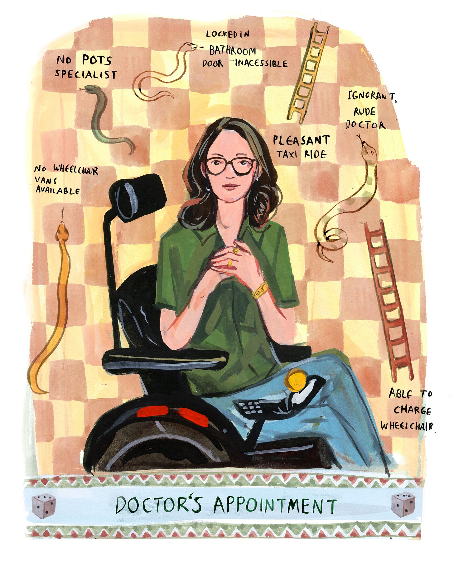 He asked no other questions. He didn’t ask about my medication, my diagnoses, my symptoms, or my wheelchair. I asked him if he was going to help me, and he said, “I am not interested in POTS and EDS.” I asked what I was supposed to do about medical care, and he said, “Find someone interested.”